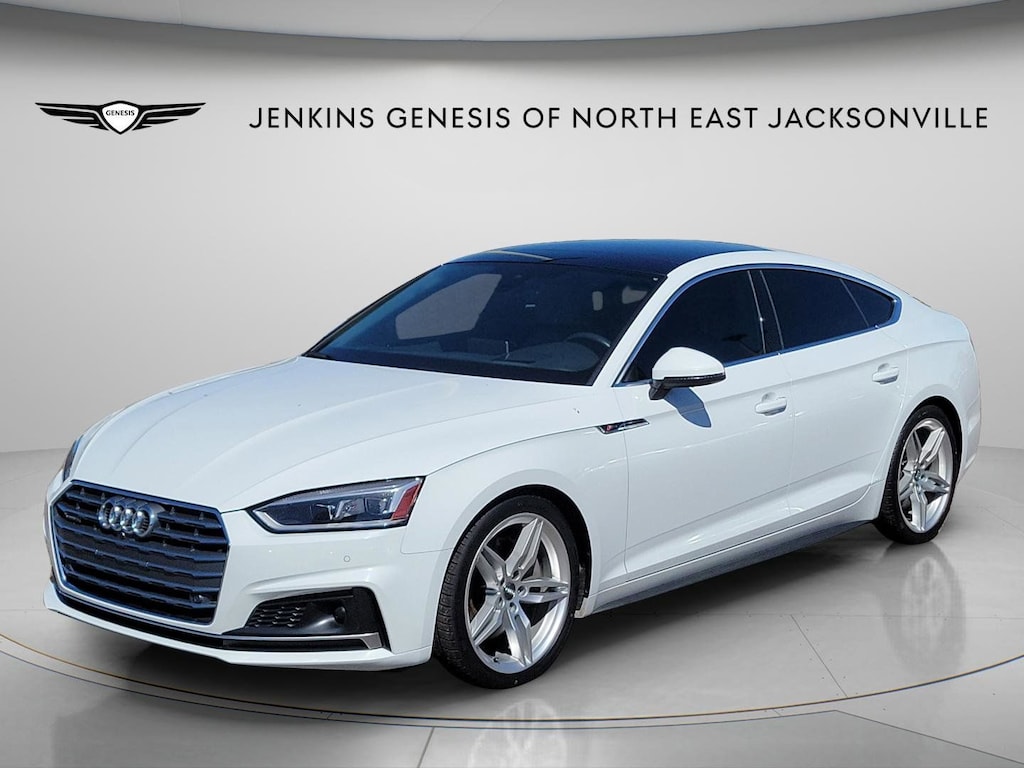 The price does not include tax, tag, license, an electronic filing fee of $449.00**, a private tag agency fee of $199.00**, and a predelivery service charge of $1199.00** **This charge represents costs and profit to the dealer for items such as inspecting, cleaning, and adjusting vehicles, as well as preparing documents related to the sale. * EPA-estimate metric: these are contingent on ideal conditions within a lab. Real-world situations such as carrying passengers or cargo, using climate control, driving style, and ambient temperatures can affect actual metrics. 24/34 City/Highway MPG Clean CARFAX. This 2018 Audi A5 2.0T Prestige in Glacier White features 19" S line Wheel Package (Wheels: 19" x 8.5" 5-Parallel-Spoke Design), Convenience Package (Alarm System w/Motion Sensors, Audi Advanced Key, Driver Seat Memory, Heated Auto-Dimming Power/Memory Exterior Mirrors, and SiriusXM All Access Service), Driver Assistance Package (Adaptive Cruise Control w/Traffic Jam Assist, Audi Active Lane Assist, High-Beam Assistant, and Traffic Sign Recognition), Interior Lighting Package Plus, Navigation Package (12.3" LCD Display Audi Virtual Cockpit and Audi MMI Navigation Plus w/MMI Touch), Prestige (Audi Side Assist, Bang & Olufsen Sound System w/3D Sound, Full Color Head-Up Display, Full LED Headlights, Heated Auto-Dimming Power Ext Mirrors w/Memory, Heated Front Seats, Parking System Plus (Front/Rear Acoustic Sensors), Rear Audi Pre Sense, and Top View Camera System), S line Sport Package (Front Sport Seats, S Line Bumpers, S Line Fender Badges, S line Side Sill Blades, Sport Suspension, and Wheels: 18" x 8.5" 5-Arm-Star Design), 10 Speakers, 4-Wheel Disc Brakes, ABS brakes, Air Conditioning, Alloy wheels, AM/FM radio, Anti-whiplash front head restraints, Audi Guard All-Weather Floor Mats, Audi smartphone interface (Apple CarPlay/Android Auto), Auto-dimming Rear-View mirror, Automatic temperature control, Brake assist, Bumpers: body-color, Compass, Delay-off headlights, Driver door bin, Driver vanity mirror, Dual front impact airbags, Dual front side impact airbags, Electronic Stability Control, Exterior Parking Camera Rear, Four wheel independent suspension, Front anti-roll bar, Front Bucket Seats, Front Center Armrest, Front dual zone A/C, Front fog lights, Front reading lights, Garage door transmitter: HomeLink, Gray Oak Wood Natural Inlays, Heated door mirrors, High intensity discharge headlights: Bi-xenon, Illuminated entry, Knee airbag, Leather Seating Surfaces, Leather Shift Knob, Leather steering wheel, Occupant sensing airbag, Outside temperature display, Overhead airbag, Overhead console, Panic alarm, Passenger door bin, Passenger vanity mirror, Power adjustable front head restraints, Power door mirrors, Power driver seat, Power Liftgate, Power moonroof, Power passenger seat, Power steering, Power windows, Radio data system, Radio: Audi Sound System, Rain sensing wipers, Rear air conditioning, Rear anti-roll bar, Rear reading lights, Rear seat center armrest, Rear window defroster, Remote keyless entry, Speed control, Speed-sensing steering, Speed-Sensitive Wipers, Split folding rear seat, Steering wheel mounted audio controls, Tachometer, Telescoping steering wheel, Tilt steering wheel, Traction control, Trip computer, Turn signal indicator mirrors, USB Cables (DISC), Variably intermittent wipers, Ventilated Front Seats, and Wheels: 18" x 8.5" 10-Spoke-Dynamic-Design . Visit our showroom 24/7 at Jenkinshyundaiofjacksonville or call 904-420-3100. quattro