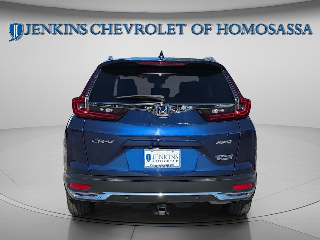 This vehicle comes equipped with 2.0L I4 DOHC 16V, 3.89 Axle Ratio, 4-Wheel Disc Brakes, 9 Speakers, ABS brakes, Adaptive Cruise Control: Adaptive Cruise Control (ACC) with Low-Speed Follow, Air Conditioning, Alloy wheels, AM/FM radio: SiriusXM, Apple CarPlay/Android Auto, Auto High-beam Headlights, Auto-dimming Rear-View mirror, Automatic temperature control, Blind Spot Information (BSI) System warning, Brake assist, Bumpers: body-color, Compass, Delay-off headlights, Driver door bin, Driver vanity mirror, Dual front impact airbags, Dual front side impact airbags, Electronic Stability Control, Exterior Parking Camera Rear, Forward collision: Collision Mitigation Braking System (CMBS) + FCW mitigation, Four wheel independent suspension, Front anti-roll bar, Front Bucket Seats, Front Center Armrest, Front dual zone A/C, Front fog lights, Front reading lights, Garage door transmitter: HomeLink, Heated door mirrors, Heated Front Bucket Seats, Heated front seats, Heated steering wheel, Illuminated entry, Leather Seat Trim, Low tire pressure warning, Memory seat, Navigation system: Honda Satellite-Linked Navigation System, Occupant sensing airbag, Outside temperature display, Overhead airbag, Overhead console, Panic alarm, Passenger door bin, Passenger vanity mirror, Power door mirrors, Power driver seat, Power Liftgate, Power moonroof, Power passenger seat, Power steering, Power windows, Radio data system, Radio: 330-Watt AM/FM/HD/SiriusXM Prem Audio Sys, Rain sensing wipers, Rear anti-roll bar, Rear seat center armrest, Rear window defroster, Rear window wiper, Remote keyless entry, Roof rack: rails only, Security system, Speed control, Speed-sensing steering, Speed-Sensitive Wipers, Split folding rear seat, Spoiler, Steering wheel mounted audio controls, Telescoping steering wheel, Tilt steering wheel, Traction control, Trip computer, Turn signal indicator mirrors, Variably intermittent wipers, and Wheels: 19" Machine-Finished Alloy w/Gray Inserts . Jenkins Chevrolet of Homosassa proudly serving Homosassa, Spring Hill, Hernando, Crystal River, Beverly Hills, Inverness. Just a half hour North of Buccaneer Bay. Come see the large, expansive inventory of the Jenkins Auto Group. 40/35 City/Highway MPG 2.0L I4 DOHC 16V. Clean CARFAX. CARFAX One-Owner. Blue 2022 Honda CR-V Hybrid Touring AWD eCVT 2.0L I4 DOHC 16V